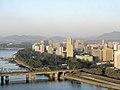 The Taedong River (Chosŏn'gŭl: 대동강)[a] is a large river in North Korea. It rises in the Rangrim Mountains of the country's north. It then flows southwest into Korea Bay at Namp'o.[3] In between, it runs through the country's capital, Pyongyang. Along the river are landmarks such as the Juche Tower and Kim Il-sung Square.
