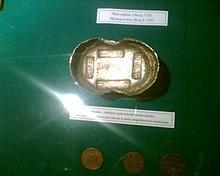 9. ^ Morse, H.B. (1907). "Currency in China". Journal of the North-China Branch of the Royal Asiatic Society. Shanghai. 38: 36. The standard ingot of China weighs about 50 taels (from 49 to 54) and, formerly called ting , is now called pao (jewel, article of value, as in the inscription on the copper cash tung-pao 通寶 = "current coin") and more commonly yuan-pao