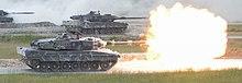 Modern tanks are versatile mobile land weapons platforms whose main armament is a large-caliber cannon called tank gun mounted in a rotating gun turret, supplemented by machine guns or other ranged weapons such as anti-tank guided missiles or rocket launchers. They have heavy vehicle armour which provides protection for the crew, the vehicle's munition storage, fuel tank and propulsion systems. The use of tracks rather than wheels provides improved operational mobility which allows the tank to overcome rugged terrain and adverse conditions such as mud and ice/snow better than wheeled vehicles, and thus be more flexibly positioned at advantageous locations on the battlefield. These features enable the tank to perform well in a variety of intense combat situations, simultaneously both offensively (with direct fire from their powerful main gun) and defensively (as fire support and defilade for friendly troops due to the near invulnerability to common infantry small arms and good resistance against most heavier weapons), all while maintaining the mobility needed to exploit changing tactical situations.[1] Fully integrating tanks into modern military forces spawned a new era of combat: armoured warfare.