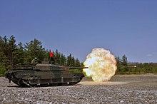 In terms of firepower, the focus of 2010s-era R&D was increased detection capability such as thermal imagers, automated fire control systems for the guns and increased muzzle energy from the gun to improve range, accuracy and armour penetration.[53] The most mature future gun technology is the electrothermal-chemical gun.[54] The XM291 electrothermal-chemical tank gun has gone through successful multiple firing sequences on a modified M8 Armored Gun System chassis.[55] To improve tank protection, one field of research involves making the tank invisible to radar by adapting stealth technologies originally designed for aircraft. Improvements to camouflage or and attempts to render it invisible through active camouflage, which changes according to where the tank is located, are being pursued. Research is also ongoing in electromagnetic armour systems to disperse or deflect incoming shaped charges,[56][57] as well as various forms of active protection systems to prevent incoming projectiles (RPGs, missiles, etc.) from striking the tank.