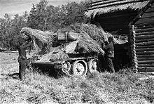 When Germany launched its invasion of the Soviet Union, Operation Barbarossa, the Soviets had a superior tank design, the T-34.[42] A lack of preparations for the Axis surprise attack, mechanical problems, poor training of the crews and incompetent leadership caused the Soviet machines to be surrounded and destroyed in large numbers. However, interference from Adolf Hitler,[43] the geographic scale of the conflict, the dogged resistance of the Soviet combat troops, and the Soviets' massive advantages in manpower and production capability prevented a repeat of the Blitzkrieg of 1940.[44] Despite early successes against the Soviets, the Germans were forced to up-gun their Panzer IVs, and to design and build both the larger and more expensive Tiger heavy tank in 1942, and the Panther medium tank the following year. In doing so, the Wehrmacht denied the infantry and other support arms the production priorities that they needed to remain equal partners with the increasingly sophisticated tanks, in turn violating the principle of combined arms they had pioneered.[4] Soviet developments following the invasion included upgunning the T-34, development of self-propelled anti-tank guns such as the SU-152, and deployment of the IS-2 in the closing stages of the war, with the T-34 being the most produced tank of World War II, totalling up to some 65,000 examples by May 1945.