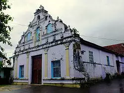 The Sumilang house is strategically located right close to the public market. According to local history, the house was never completed because it was overtaken by the Japanese in 1941–1945.[14] The house, though in ruins, remains magnificent. It is entirely made of reinforced concrete. Its style connects with traditional Filipino architecture, while responding to the trends of its period in the 1930s. House bays are separated by pilasters. There are subtle floral decorations at the corners of the windows. Supporting corbels are scroll-shaped in form. The trapezoidal-shaped windows are typical of Art Deco style of the 1930s.