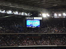 The stadium became unpopular with many of its tenant clubs, especially St Kilda, North Melbourne and Western Bulldogs, as high operating costs and the high proportion of gate revenues which were paid back to the stadium meant that clubs earned much lower returns for a game at Docklands than they would have earned from the same attendance at the Melbourne Cricket Ground; and usually had to draw at least 20,000 spectators to break even on a game.[18] Those three clubs all received compensation payments from the AFL to balance the weak deals,[19] and sold occasional home matches to small interstate or international venues for greater financial returns than they could earn at Docklands.[20]