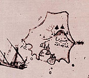 Tenedos was occupied by Sultan Mehmet II in 1455, two years after his Conquest of Constantinople ending the Byzantine empire.[59] It became the first island controlled by the Ottoman Empire in the Aegean sea.[81] The island was still uninhabited at that time, almost 75 years after it had been forcefully evacuated.[68] Mehmet II rebuilt the island's fort.[59] During his reign the Ottoman navy used the island as a supply base. The Venetians, realizing the strategic importance of the island, deployed forces on it. Giacopo Loredano took Tenedos for Venice in 1464.[82] The same year, Ottoman Admiral Mahmud Pasha recaptured the island.[83] During the Ottoman regime, the island was repopulated (by granting a tax exemption).[84] The Ottoman fleet admiral and cartographer, Piri Reis, in his book Kitab-i-Bahriye, completed in 1521, included a map of the shore and the islands off it, marking Tenedos as well. He noted that ships heading north from Smyrna to the Dardanelles passed usually through the seven-mile strip of sea between the island and the mainland.[85]