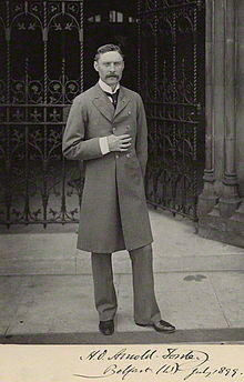 Shortly thereafter, Hugh Arnold-Forster was appointed Secretary of State for War. One of his first acts was to appoint Lord Esher to chair a committee on War Office reform; this would culminate in the Esher Report of 1904, which called for a number of administrative reforms, including the formation of the Army Council.[38] In the summer of 1904, the Norfolk Commission, which had been set up to consider the existing state of the Militia and Volunteers, issued its report. It advocated a form of compulsory service—which was swiftly rejected by the Government—but also offered various more pragmatic reforms which were later taken up as part of the Haldane Reforms. The state of the Militia was reported as "unfit to take the field", and the Volunteer Force was "not qualified .. against a Regular Army".[39] For the time being, however, Arnold-Forster pressed ahead with his reforms, proposing on 14 July 1904—to strong opposition—that the Regular Army be split into a General Service Army (liable for peacetime service at home and overseas) and a Home Service Army (for peacetime service at home, and able to be sent overseas in time of crisis). The Militia was not discussed in the proposals, but he undertook to reduce the strength of the Volunteers and split them into first and second-class units.[40] When the debate resumed in the 1905 session, Parliament having been adjourned shortly after the original announcement, it continued to be attacked, and very little progress was made in implementing it; an attempt in June 1905 to confidentially identify Volunteer units likely to be disbanded was reported by the Daily Chronicle, and questions were asked in both Houses of Parliament. Arnold-Forster was forced to back down, suggesting that he only wished to determine what proportion of the Volunteers were capable of foreign service.[41]