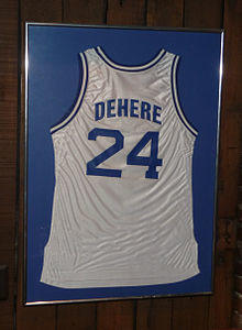 Dehere played for Seton Hall from 1989 until 1993, where he had held the school and conference record with 2,494 career points, as well as school career records for 3-point field goals made and 3-point field goals attempted.[2] Dehere also holds single season records for 3-point field goals made and 3-point field goal percentage.[3] He was named Big East Player of the Year in the 1992–93 season, as well as Conference Tournament MVP.