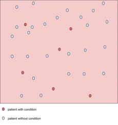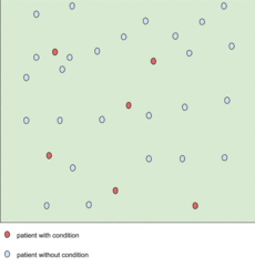 In medical diagnosis, test sensitivity is the ability of a test to correctly identify those with the disease (true positive rate), whereas test specificity is the ability of the test to correctly identify those without the disease (true negative rate). If 100 patients known to have a disease were tested, and 43 test positive, then the test has 43% sensitivity. If 100 with no disease are tested and 96 return a completely negative result, then the test has 96% specificity. Sensitivity and specificity are prevalence-independent test characteristics, as their values are intrinsic to the test and do not depend on the disease prevalence in the population of interest.[12] Positive and negative predictive values, but not sensitivity or specificity, are values influenced by the prevalence of disease in the population that is being tested. These concepts are illustrated graphically in this applet Bayesian clinical diagnostic model which show the positive and negative predictive values as a function of the prevalence, the sensitivity and specificity.