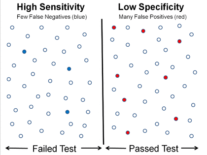 For all testing, both diagnostic and screening, there is a trade-off between sensitivity and specificity. Higher sensitivities will mean lower specificities and vice versa.