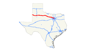 | Baylor | Seymour | 230.3 | 370.6 | east end of US 82 overlap; west end of US 183 Bus. / US 277 Bus. / US 283 Bus. overlap | |||