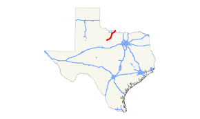 SH 79 begins at an intersection with US 183/US 283 in Throckmorton. The highway runs in an east-west direction until FM 926, east of Elbert. The highway turns northeast, running to Olney and Archer City. The highway enters Wichita Falls and almost immediately begins an overlap with US 281 on the Henry S. Grace Freeway. At the interchange with US 82/US 287, US 281 travels north to downtown while SH 79 travels to the east. Shortly after joining US 82/287, SH 79 leaves the highways and runs on the eastern edge of the city as the Waurika Freeway. SH 79 runs through Dean, Petrolia and Byers before entering Oklahoma as OK‑79.