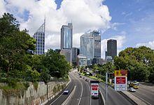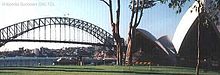 In more recent years, major transport projects have affected the Domain. The most significant of these was the building of the Cahill Expressway in 1952. As part of this project to build an eastern tributary to the Sydney Harbour Bridge, the small roads to the north and east of the Domain were widened into expressways. After the completion of the project, traffic moving south from the Bridge could pass through a tunnel built into the western part of the Royal Botanic Tunnels, after which it became a sunken road built into the northern edge of The Domain. The road crosses the eastern part of The Domain in a tunnel, exiting through the slope on the east side of The Domain, after which it continues south along the eastern edge of the Domain as the Eastern Distributor. The Cahill Expressway emphatically separated The Domain from the Royal Botanic Gardens, and destroyed the close spatial relationship between the Gardens and The Domain. Between 1958 and the 1960s, the Cahill Expressway resumption and construction work began, dissecting The Domain and Gardens, partly destroying Fig Tree Avenue (first entrance, planted 1847) and loss of 24 palm trees and 12 other trees lost. The Domain and the Botanic Gardens were sewered for the first time since 1792.[2] Then in the 1970s, the rail tunnel for the Eastern Suburbs Line was built under the southern part of the Domain: the railway exits the tunnel on the eastern slopes of The Domain, after which (owing to the large change in ground elevation) it becomes a viaduct. In 1992, the Sydney Harbour Tunnel was built, with its southern section under the northwestern part of The Domain.