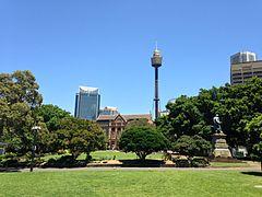 The Domain is a heritage-listed 34-hectare (84-acre) area of open space located on the eastern fringe of the Sydney central business district, in the City of Sydney local government area of New South Wales, Australia.[1] Separating the central business district from Woolloomooloo, The Domain adjoins the Royal Botanic Gardens and is managed by the Royal Botanic Gardens Trust, a division of the NSW Office of Environment and Heritage, an agency of the Government of New South Wales. The Domain is a popular venue for outdoor concerts, open-air events, large political gatherings and rallies and is used daily by the people of Sydney for exercise and relaxation. Along with the Royal Botanic Gardens, The Domain was added to the New South Wales State Heritage Register on 2 April 1999.[2]