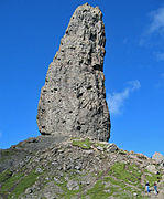 The Storr (Scottish Gaelic: An Stòr)[1] is a rocky hill on the Trotternish peninsula of the Isle of Skye in Scotland. The hill presents a steep rocky eastern face overlooking the Sound of Raasay, contrasting with gentler grassy slopes to the west.