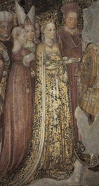 - ^ The famous treasure of Monza contains the Iron Crown of Lombardy and the theca persica, enclosing a text from the Gospel of John, sent by Pope Gregory to her for her son Adaloald. Another of the gifts of this pope to the Lombard queen was a cruciform encolpion (reliquary) containing a portion of the True Cross. The history of the queen and her connection with the famous Iron Crown of Lombardy are narrated in the frescoes painted in the Theodelinda Chapel in the Monza Cathedral, work by Ambrogio and Gregorio Zavattari (1444).