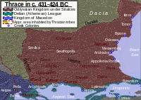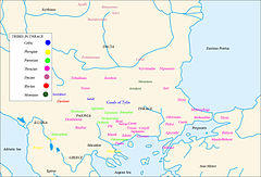 - ^ The Oxford Classical Dictionary by Simon Hornblower and Antony Spawforth, ISBN 0-19-860641-9, page 1514,"The kingdom of the Odrysae, the leading tribe of Thrace extended in present-day Bulgaria, Turkish Thrace (east of the Hebrus) and Greece between the Hebrus and Strymon except for the coastal strip with its Greek cities."