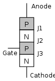 The thyristor has three p-n junctions (serially named J1, J2, J3 from the anode).