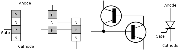 Some sources define silicon-controlled rectifier (SCR) and thyristor as synonymous.[1] Other sources define thyristors as more complex devices that incorporate at least four layers of alternating N-type and P-type substrate.