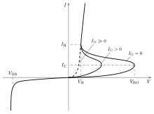 In a conventional thyristor, once it has been switched on by the gate terminal, the device remains latched in the on-state (i.e. does not need a continuous supply of gate current to remain in the on state), providing the anode current has exceeded the latching current (IL). As long as the anode remains positively biased, it cannot be switched off unless the current drops below the holding current (IH). In normal working conditions the latching current is always greater than holding current. In the above figure IL has to come above the IH on y-axis since IL>IH.
