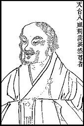 During this period, Huayan and Chan influences made strong inroads into Tiantai thought. Zhanran's disciple and seventh patriarch Daosui, and syncretic figures such as Zhi Yuan (768-844) and Daochang Ningfen all combined Tiantai with Chan ideas (particularly of the Heze school).[16] Daosui (Chinese: 道邃; pinyin: Dàosuì), is important because he was the primary teacher of Saichō, the founder of the Japanese Tiantai tradition (known in Japanese as Tendai). Other Tiantai syncretists include Deshao (881-972) who was associated with the Fayen branch of Chan and his student Yongming Yenshou (954-974) who attempted to unify Tiantai, Huayen and Yogacara teachings under a kind of idealism influenced by Zongmi, emphasizing what he called the "one pure formless mind".[17]
