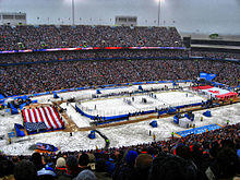Hoping to reduce the number of tie games during the regular season, the NHL decided that beginning in the 1999–2000 season, in any game tied after regulation time, both teams would be guaranteed one point, while the team that won in overtime would earn a second point.[141] The Edmonton Oilers hosted the NHL's first regular season outdoor hockey game, the Heritage Classic on November 22, 2003. The game against the Canadiens was held at Commonwealth Stadium before a then-record crowd of 57,167 fans who endured temperatures as low as −18 degrees Celsius (0 degrees Fahrenheit).[142] In the 2005–06 season, the NHL eliminated tie games, as the shootout was introduced to decide all regular season games tied after the five-minute overtime period.[143] The shootout was one of several rule changes made in 2005, as the league attempted to open the game up after the lockout.[144] One of the most controversial changes was the league's zero-tolerance policy on obstruction penalties. The league hoped that the game could be opened up if it cracked down on "clutching and grabbing".[144] The tighter regulations have met with numerous complaints about the legitimacy of some calls,[145] that players are diving to draw penalties,[146] and that officials are not calling enough penalties.[147] The changes initially led to a sharp increase in scoring. Teams combined to score 6.1 goals per game in 2005–06, more than a full goal per game higher than in the 2003–04 season. This represented the highest increase in offence since 1929–30.[144] However, scoring has rapidly declined since, approaching pre-lockout totals in 2007–08.[148]