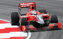 Glock's future for a time appeared uncertain, but on 17 November new team Manor Grand Prix announced that he had signed for them and would be their lead driver for the 2010 and 2011 seasons.[9] It seemed as though Glock would partner Polish driver Robert Kubica at Renault, but following Renault's decision to announce whether it will take part in Formula 1 for 2010, Glock chose an option where he will be guaranteed a drive although the car might be less competitive.[9] Manor became Virgin Racing in November 2009 and that Glock's former GP2 rival Lucas di Grassi would become his teammate. Glock started the 2010 season with three successive retirements in Bahrain, Australia and Malaysia. In addition, he failed to start the Chinese Grand Prix due to engine failure; This was despite good qualifying performances which saw him out-qualify all of the new teams' drivers in Bahrain and regularly start higher than his teammate Di Grassi. The Spanish Grand Prix was where he recorded his first finish for the team, and his first finish of the season with 18th place. Glock's best result of the season saw him finish in 14th in Japan, the team's best result of the year.