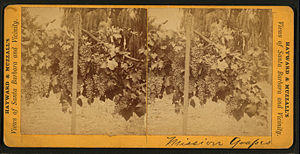 The three grapes are relatively similar but do have some noticeable differences. Torrontés Riojano and Torrontés Sanjuanino both tend to have large loose bunches of pale grapes while Torrontés Mendocino, however, has smaller, tighter bunches of darker yellow grapes. Torrontés Riojano is the most aromatic of the three, with aromas reminiscent of Muscat and Gewürtztraminer wines. The least aromatic, and least widely planted, is Torrontés Mendocino with the aromatics and plantings of Torrontés Sanjuanino falling in between.[3] All three Argentine Torrontés varieties belong to the Criollas group of grape varieties, which is a term used for presumably American-born cultivars of the European grapevine Vitis vinifera.[4]