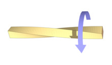 In the field of solid mechanics, torsion is the twisting of an object due to an applied torque. Torsion is expressed in either the Pascal (Pa), an SI unit for newtons per square metre, or in pounds per square inch (psi) while torque is expressed in newton metres (N·m) or foot-pound force (ft·lbf). In sections perpendicular to the torque axis, the resultant shear stress in this section is perpendicular to the radius.