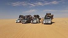 As at 2018 Chad had a total of 44,000 km of roads of which approximately 260 km are paved.[2] Some, but not all of the roads in the capital N'Djamena are paved. Outside of N'Djamena there is one paved road which runs from Massakory in the north, through N'Djamena and then south, through the cities of Guélengdeng, Bongor, Kélo and Moundou, with a short spur leading in the direction of Kousseri, Cameroon, near N'Djamena. Expansion of the road towards Cameroon through Pala and Léré is reportedly in the preparatory stages.[3]