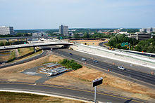 The Virginia State Highway System is an integrated system of roads maintained by the Virginia Department of Transportation (VDOT). As of 2005, the VDOT maintains 57,082 miles (91,865 km) of state highways — the third largest system in the United States, after Texas and North Carolina. Interstate 95 and Interstate 81 are the two major north-south highways through Virginia. The Capital Beltway, Interstate 495 crosses the Potomac River in Alexandria and McLean. The Springfield Interchange at the junction of I-95, I-395, and the Capital Beltway, in Springfield, Virginia, south of Washington, D.C. has been reconstructed to improve traffic flow; widening of Woodrow Wilson Bridge was finished in mid-2008.[1] Interstate 66, another heavily traveled route into Washington, DC, connects the Capital Beltway to I81 at Front Royal, Virginia. Interstate 64 runs east-west through the state, from the terminus in Virginia's southeast in Chesapeake running northwest into Richmond, then west through Charlottesville and into West Virginia and beyond.