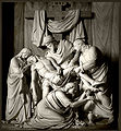 In the first chapel to the right is a Baptism of Christ and other scenes of the life of John the Baptist by the Florentine Mannerist painter Giambattista Naldini. In the third chapel on the right is an Assumption of the Virgin by a pupil of Michelangelo, Daniele da Volterra (the last figure on the right is said to be a portrait of Michelangelo).[6] In the fourth chapel, the Cappella Orsini, are scenes of the Passion of Christ by Paris Nogari and the funeral monument of Cardinal Rodolfo Pio da Carpi by Leonardo Sormani.[7] In a chapel near the high altar is a canvas of the Crucifixion painted by Cesare Nebbia.