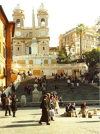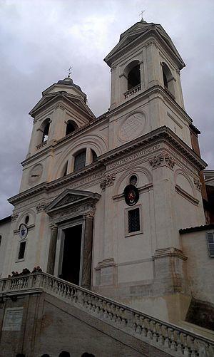The church of the Santissima Trinità dei Monti, often called merely the Trinità dei Monti (French: La Trinité-des-Monts), is a Roman Catholic late Renaissance titular church in Rome, central Italy. It is best known for its commanding position above the Spanish Steps which lead down to the Piazza di Spagna. The church and its surrounding area (including the Villa Medici) are a French State property.