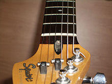 - On newer Fender-style electric guitars — behind the nut, uncovered and can usually be adjusted by a 1/8" (3 mm) Allen wrench.