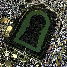 In Japan, powerful leaders built tumuli known as kofun. The Kofun period of Japanese history takes its name from these burial mounds.[51] The largest is Daisen-ryo Kofun, or more commonly Nintoku-ryo Kofun, with a length of 840 metres. In addition to other shapes, kofun include a keyhole shape, typically seen in Daisen Kofun. Foreign museums possesses some grave goods.