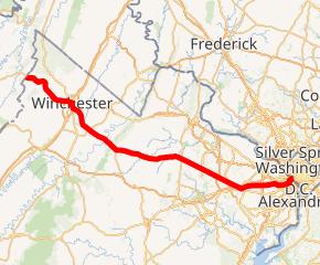 The eastern two-thirds of US 50 in Virginia is substantially paralleled by Interstate 66, although the newer highway gradually diverges to the south to Front Royal and meets Interstate 81 at Strasburg, about 15 miles (24 km) south of Winchester, where US 50 meets I-81.