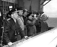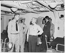 Secretary of the Navy James Forrestal came on board at 2023 for an official visit with Admiral Davidson.[5]