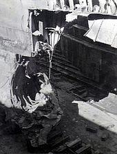 On 24 October 1933, Chicago collided with the British freighter Silver Palm in dense fog off Point Sur, California. Three officers aboard Chicago were killed in their quarters during the collision, and an enlisted man's arm had to be amputated as well. Silver Palm penetrated around 18 feet into the cruiser's port bow, forward of the Number 1 gun mount.[6] At the time of the incident damage was estimated to be around $200,000 ($3.95 million today).[7] The vessel was repaired at the Mare Island Naval Shipyard, departing there on 24 March 1934.[8]