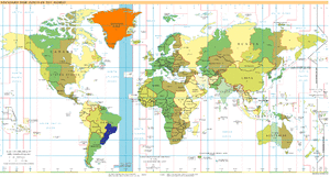 World map with the time zone highlighted | |