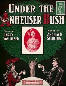 "Under the Anheuser Bush" was a popular beer garden song commissioned by the Anheuser-Busch brewing company in 1903.[1] With music by Harry Von Tilzer and words by Andrew B. Sterling, the title contains a pun on the surnames of the company's founders ("Busch" is the German word for "Bush").