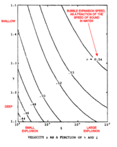 Effects of an underwater explosion depend on several things, including distance from the explosion, the energy of the explosion, the depth of the explosion, and the depth of the water.[2]