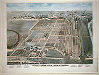 The Union Stock Yard & Transit Co., or The Yards, was the meatpacking district in Chicago for more than a century, starting in 1865. The district was operated by a group of railroad companies that acquired marshland and turned it into a centralized processing area. By the 1890s, the railroad capital behind the Union Stockyards was Vanderbilt money.[1] The Union Stockyards operated in the New City community area for 106 years,[2] helping Chicago become known as the "hog butcher for the world" and the center of the American meatpacking industry for decades.[3]
