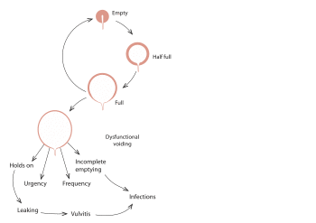 Bladder control problems have been found to be associated with higher incidence of many other health problems such as obesity and diabetes. Difficulty with bladder control results in higher rates of depression and limited activity levels.[63]