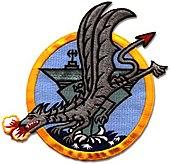 The squadron's first insignia was approved by the Chief of Naval Operations (CNO) on 11 October 1945 and consisted of a reddish-brown kangaroo with crimson boxing gloves on a white cloud. The squadron was known as the Fightin' Kangaroos. Following the squadron's redesignation to VF-15A, the squadron changed its name to the Black Knights and a new insignia was approved on 24 November 1947. It was a black helmet with gold markings and a gold shield. When the squadron was redesignated VF-151, the helmet/shield insignia was modified and the Latin inscription In Omnia Paratus was added, meaning ready for anything. A new squadron insignia was approved on 8 August 1950, consisting of a silver dragon and grey/black aircraft carrier. This design was modified with a yellow dragon, white nuclear symbol and white cloud with a red rising center when the squadron became VA-192 on 21 June 1956. The squadron took on the nickname Golden Dragons at this time.