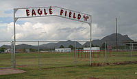 Anglo-Texan[9] settlement began in the late 1850s and early 1860s supportive of the San Antonio-El Paso Overland Mail route.[10] Although U.S. Army Major Jefferson Van Horne is believed to have passed near the area in 1849 on his way to take command of what would later become Fort Bliss, the town is instead named for Lt. James Judson Van Horn who commanded an army garrison at the Van Horn Wells beginning in 1859. Lt. Van Horn's command was relatively short-lived, as the post was seized by Confederate forces in 1861 and Lt. Van Horn taken prisoner.[11] Settlement was further stimulated by the construction of the Texas and Pacific Railway in 1881.[12][13][14] The town has several buildings on the National Register of Historic Places including the First Presbyterian Church (now Primera Iglesia Bautista), built in 1901.