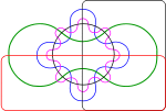 For higher numbers of sets, some loss of symmetry in the diagrams is unavoidable. Venn was keen to find "symmetrical figures...elegant in themselves,"[9] that represented higher numbers of sets, and he devised an elegant four-set diagram using ellipses (see below). He also gave a construction for Venn diagrams for any number of sets, where each successive curve that delimits a set interleaves with previous curves, starting with the three-circle diagram.