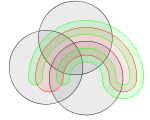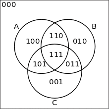 Venn diagrams correspond to truth tables for the propositions , , etc., in the sense that each region of Venn diagram corresponds to one row of the truth table.[21][22] This type is also known as Johnston diagram. Another way of representing sets is with John F. Randolph's R-diagrams.