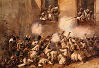 A total of 1,357 Victoria Crosses have been awarded since 1856 to 1,354 men.[64] There are several statistics related to the greatest number of VCs awarded in individual battles or wars. The greatest number of Victoria Crosses won on a single day is 18, for deeds performed on 16 November 1857, during Second Relief of Lucknow (primarily the assault on and capture of Sikandar Bagh), during the Indian Mutiny.[65] The greatest number won in a single action is 28, for the whole of the Second Relief of Lucknow, 14–22 November 1857.[65] The greatest number won by a single unit during a single action is seven, to the 2nd/24th Foot, for the defence of Rorke's Drift, 22–23 January 1879, during the Zulu War.[66] The greatest number won in a single conflict is 628, being for the First World War.[67] There are only five living holders of the VC—three British, one Australian, one Gurkha—one award for the Second World War and four awards since; in addition one New Zealander holds the Victoria Cross for New Zealand and three Australians hold the Victoria Cross for Australia. Eight of the then-twelve surviving holders of the Victoria Cross attended the 150th Anniversary service of remembrance at Westminster Abbey on 26 June 2006.[68]