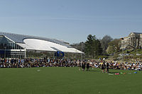 During the 1990s the university developed several recreational activities for students, including FallFest and WVU "Up All Night". While the programs were created to provide safe entertainment for students and to combat WVU's inclusion as one of the nation's top party schools,[34] they also garnered national attention as solutions for reducing alcohol consumption and partying on college campuses across the country.[35][36] In 2001, a $34 million, 177,000-square-foot (16,400 m2) recreation facility opened on the Evansdale campus, providing students with exercise facilities, recreational activities, and personal training programs.[37]