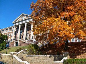 Under the terms of the 1862 Morrill Land-Grant Colleges Act, the West Virginia Legislature created the Agricultural College of West Virginia on February 7, 1867, and the school officially opened on September 2 of the same year.[11][12] On December 4, 1868, lawmakers renamed the college West Virginia University to represent a broader range of higher education.[13] It built on the grounds of three former academies, the Monongalia Academy of 1814, the Morgantown Female Academy of 1831, and Woodburn Female Seminary of 1858.[14] Upon its founding, the local newspaper claimed that "a place more eligible for the quiet and successful pursuit of science and literature is nowhere to be found".[12]