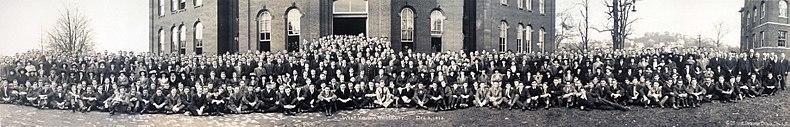 The campus welcomed U.S. President William Howard Taft to campus for WVU President Thomas Hodges's inauguration in 1911.[21] On November 2, 1911, President Taft delivered the address "World Wide Speech", from the front porch of Purinton House.[25] However, the University's efforts to attract more qualified educators, increase enrollment, and expand the campus was hindered during a period that saw two World Wars and the Great Depression. With a heavy military influence in the university, many students left college to join the army during World War I, and the local ROTC was organized in 1916.[26] Women's involvement in the war efforts at home led to the creation of Women's Hall dormitory, now Stalnaker Hall, in 1918.[27]