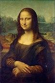 Mona Lisa; by Leonardo da Vinci; c. 1503–1506, perhaps continuing until c. 1517; oil on poplar panel; 77 cm × 53 cm; Louvre